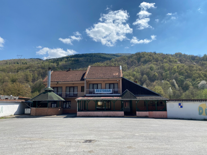4-storey building (BS+GF+1+Attic) in Village Ribarevine (Municipality Bijelo Polje), next to Adriatic motorway, section Bijelo Polje-Mojkovac. There are non-residential part in basement, commercial part on the ground floor and residential parts on first floor and attic. Commercial ground floor area is in restaurant use. First floor and attic is consisted of 6 apartment rooms, so whole building is in tourism use as Motel. There is large arranged parking area in front of restaurant and one separate building under construction on right side by street view. Building under construction is not inscribed in Deed of Title.