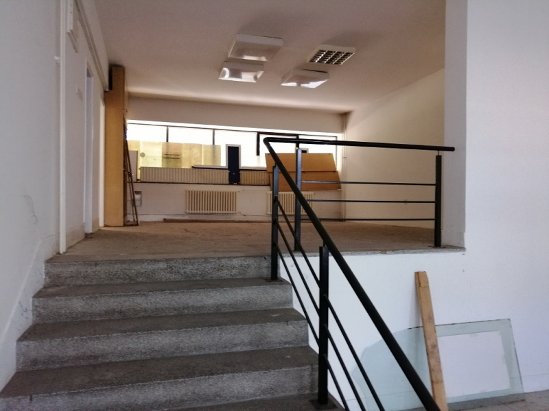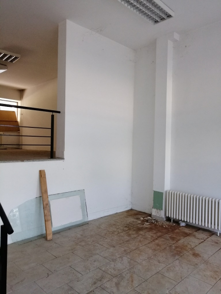 Business space located on the ground floor of a residential building for collective housing in a commercial residential area in the center of Subotica, in a busy location, next to the dairy market. The store is ground floor, but extends on two levels, the lower level to the street height of 4.15 m and the upper level 2.75 m on which there is an office and a toilet with an entrance hall. The store is provided with the necessary infrastructure, central heating and tt installations, but there are no cooling devices and video surveillance. Public parking is available in front of the property and on the surrounding roads as well as in the yard behind the building. The office space is currently empty and not in use.