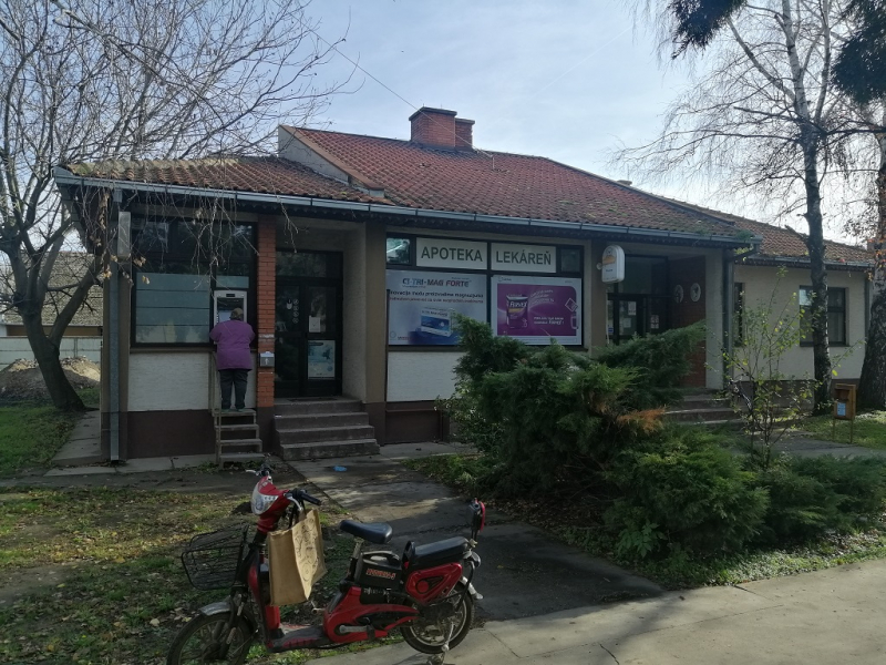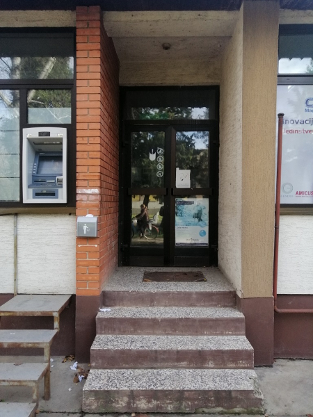 The real estate is a business space located in a part of a ground floor building. The business space consists of a counter hall and a kitchenette. The building of the local community and the pharmacy are leaning on the real estate in question. The office space has an entrance directly from the street. It is not currently used, while in previous years it was used as a branch of NLB Bank.