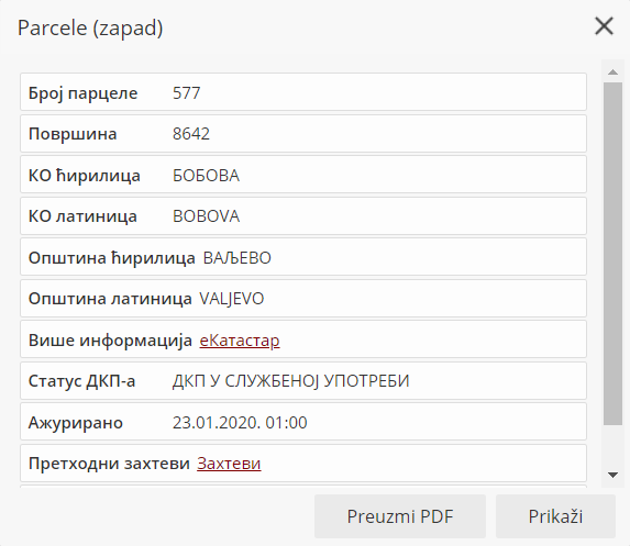 Agricultural land on KP 577 and 714 KO Bobova, total area 21,297 m2, is located at Duboka Jaruga and Reka in Bobova. The plots are located on hilly terrain. Access to the plots is provided by dirt mountain roads. At a distance of about 2 km there is a connection to the main road 143 which connects Valjevo and Pecka. The terrain of the plot is in decline.