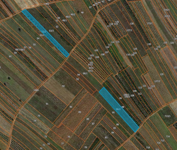 Land at c.p. 53/2 represents areas planted with perennial fruit trees that are not maintained, while plots 96/2 and 256/1 were planted with annual crops, and are now overgrown with wild vegetation.