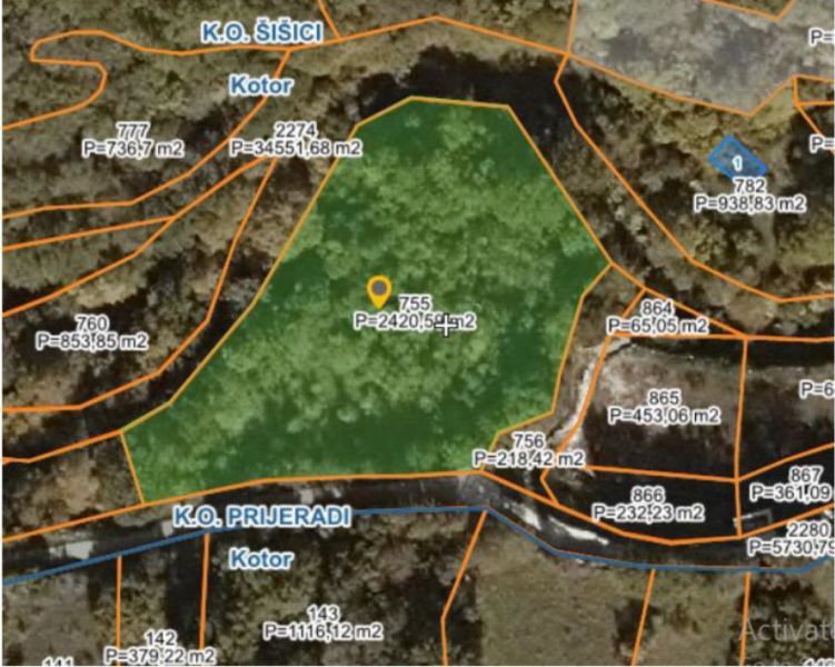 Agricultural land in the municipality of Kotor, place Šišići. The mentioned land is positioned 1.1 km from the Adriatic Highway. (LN br.290, KO Šišić, kat. parcela 755, šuma 3. klase)